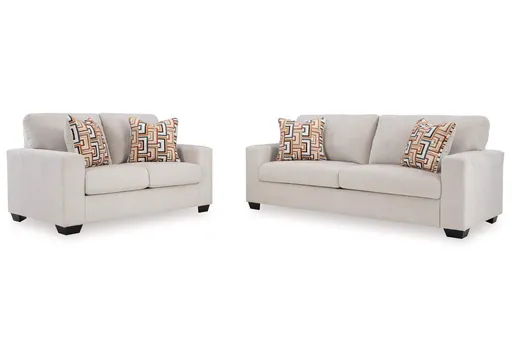 Looking to make a simply chic statement with color? Liven up your living room with the Aviemore seating package. Its trend-right light neutral upholstery is a perfect blank canvas for adding pops of color. Bold and eclectic accent pillows complete the look. Pairing posh style with everyday comfort, this group is a welcome addition to contemporary spaces.