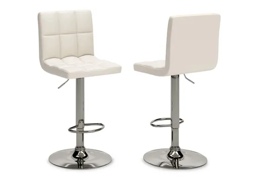 Here's a bar stool that rises to the occasion. It is sleek and modern with a chrome-tone finish. Square-tufted, bone-colored faux leather upholstery makes this barstool pop. It easily adjusts from counter to pub height making it as versatile as it is attractive. This tall swivel barstool is a perfect seat for any trendy home bar or game room.