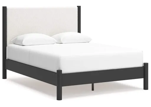 The Cadmori queen upholstered panel bed reflects your sophisticated approach to boho style. Crafted with both form and function in mind, its fresh white fabric beautifully contrasts the matte black finish. The versatile design suits all-neutral spaces or blends with your favorite pops of color. It’s inviting, yet posh. Luxe, yet laid-back. With this bed, your free-spirited vibe meets modern design.