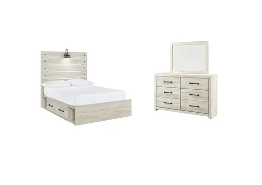 cambeck full panel bed with 2 storage drawers with mirrored dresser