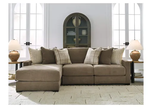 Casual, contemporary style and a comfortable fit. The Camellia-Court sectional with chaise merges the best of both in perfect harmony. Plush reversible cushions and soft linen-look upholstery create an ultra-cozy spot for movie nights, guests and everyday lounging. Accent pillows add a wonderful layer of interest. Plus the sectional's modular design easily adapts to your space.