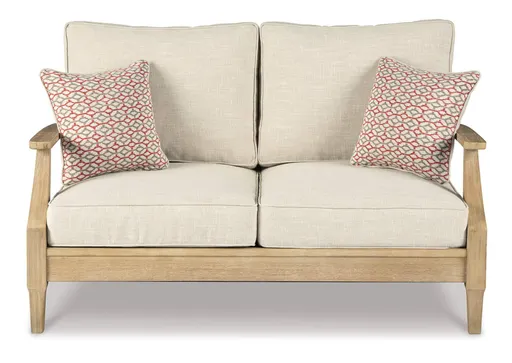 An effortlessly elegant choice in outdoor furniture, the Clare View outdoor loveseat marries sturdiness and style in such a delightful way. For that much more weather protection, the loveseat’s eucalyptus wood frame with tapered touches and slat styling is treated to a 5-step finishing process. Sumptuously soft yet remarkably durable, the included cushions and colorful throw pillows are wrapped in a high-performing, low-maintenance Nuvella® fabric you’re sure to love.