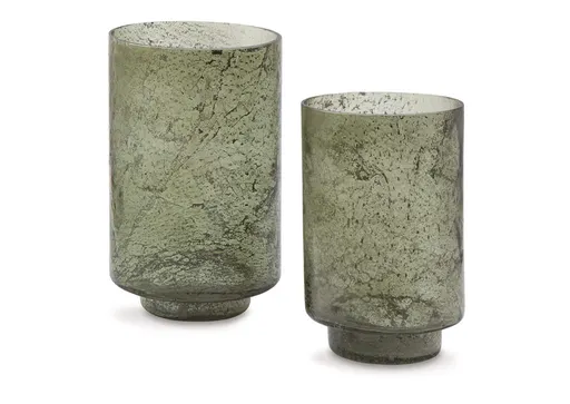 Create an even cozier ambiance in your home with the Clarkton candle holder set. The green sanded glass makes the soft glow of electric or real candles all the more beautiful. Stunning when displayed as a duo or standing alone, these holders are a simple way to upgrade the style of your space.