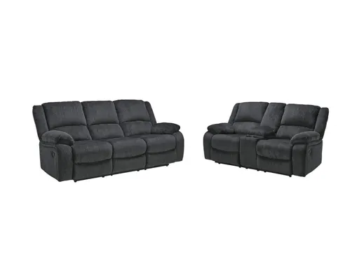 Built for luxury, the Draycoll reclining sofa and loveseat with center console lets you kick back in reliable style. The thick, softly textured chenille upholstery provides a comfy surface on which to lounge. With bustle back construction and thickly cushioned armrests, this set gives you the dependable support you need to unwind with the convenience of the loveseat’s center console to ease your evening.