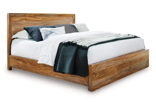 Discover something extraordinary with the clean-lined Dressonni queen panel bed. The rich natural beauty of the wood, enhanced with a clear wood-tone finish, brings an organically stunning vibe to your bedroom. This strikingly simple low profile bed creates the understated, modern look you want to wake up to every morning.