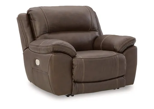 Load up on comfort in a cool, clean-lined and contemporary way with the Dunleith zero wall recliner with power headrest. Rest assured, the expertly matched leather and faux leather upholstery is enriched with a pebble grain effect for authentic appeal and enhanced with jumbo stitching for dramatic contrast. It features a one-touch power control with adjustable positions and includes an Easy View™ adjustable headrest that allows a primo view of the TV even when you're reclined. The extended ottoman provides extra length for leg comfort. A zero-draw USB plug-in at your fingertips lets you charge up as you chill out.
