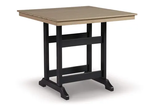 Raise the bar on outdoor living with the Fairen Trail 42" square dining table. Crafted for style, comfort and MEGA-TUFF® durability, it caters with a standout look that pairs tones of driftwood and black for twice the interest. The table's counter height design elevates the aesthetic. An umbrella hole lets you throw some shade on your outdoor living space.