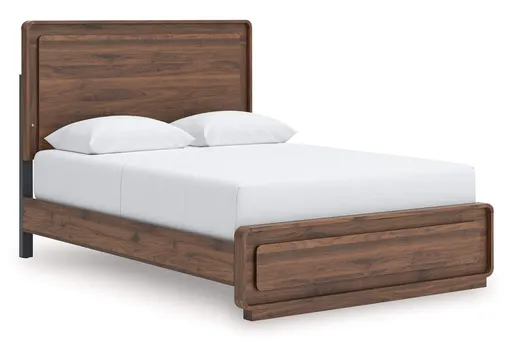Grace your restful retreat with an added dose of refinement. This queen panel bed showcases a stunning rich brown wood tone, while the rounded frame softens its silhouette to elevate the look. And it seamlessly incorporates forward-thinking function, with an LED backlight in the headboard that can be easily accessed from both sides of the bed. It’s curated, contemporary and utterly chic.