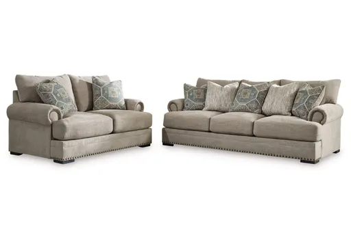 Looking to enhance your home's visual appeal? The Galemore seating package offers sophisticated design, comfort and elegance with tonal colors, roll arms and nailhead accents. Enjoy optimal coziness as you nestle into luxurious soft upholstery and feather-blend cushions. Perfect for modern spaces, it's just the spot to sit back and relax in style.