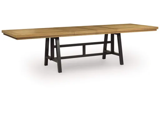 The Galliden dining extension table brings a rustic vibe to urban contemporary design. It’s a modern approach to natural beauty, pairing a natural oak finish with an aged black to create a chic two-tone look. With its stunningly simple color palette, this table seamlessly coordinates with your existing decor.