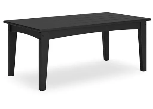 Drift into outdoor entertainment bliss with the Hyland Wave coffee table. Dressed in a smart black for a sophisticated feel, it weathers sunny summer days and cozy winter nights with durable MEGA-TUFF® HDPE material. When it comes to form and function, the table's rain-shedding slatted design simply goes with the flow. Use it to hold outdoor decor, drinks or snacks.