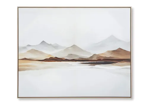 Bring the majesty of the mountains indoors with the Karalen landscape. An open expanse in the foreground contrasts and draws the eye to the rolling hills. This wall art takes a minimalistic approach to natural beauty, with neutral tones that make an impact in contemporary spaces.