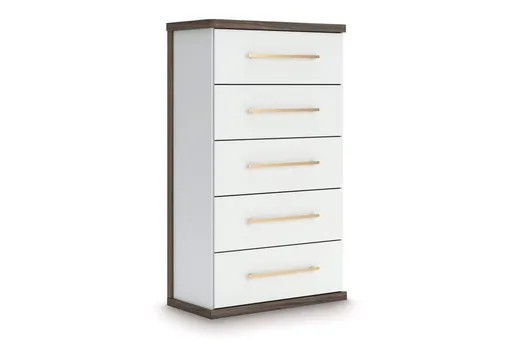 kendanport - five drawer chest - brown / white
