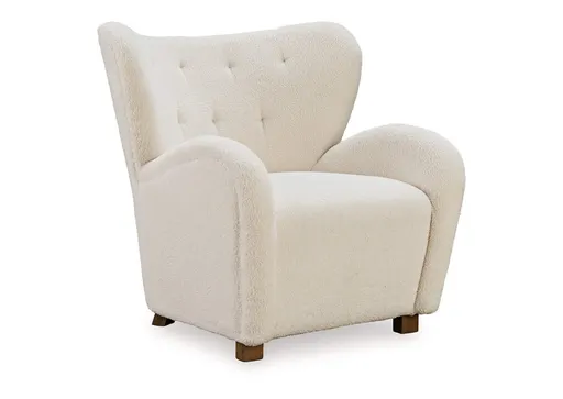 High style meets relaxation in the Larbell accent chair. Cozy faux shearling fabric keeps the look contemporary without compromising on comfort. A tufted wingback design and dramatic slope arms add high-fashion flair. It's the perfect place to curl up and enjoy your favorite book or podcast.