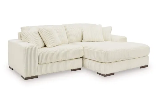 Plush and posh. Showcase your eye for on-trend texture with the statement-making cord upholstery of the Lindyn sectional with chaise. Its stunningly soft fabric entices in an ivory hue, complementing contemporary color palettes. Sink into the cushions and plan to stay a while—this cozy living room centerpiece highlights your high-end approach to comfort and style.