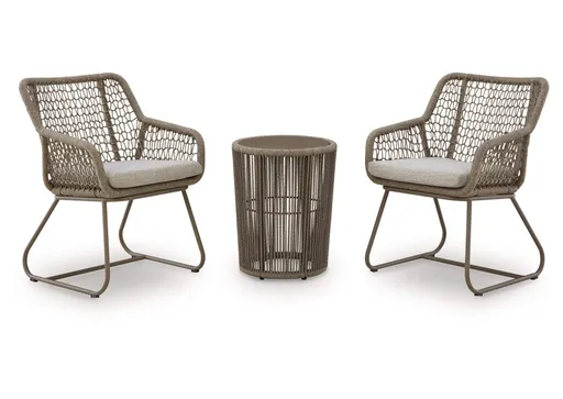 On-trend style, made for outdoor living. This outdoor table and chair set impresses with its contemporary vibe and durable construction. Detailed rope designs on sturdy aluminum frames make a chic impression. And with UV-resistant performance fabric, the cushions stay vibrant as they weather the elements.