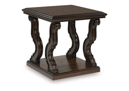Lavish, luxurious living is within reach when you add the Maylee end table to your living room. Recalling a classic sense of refinement, its elegant scrolled legs make a beautifully bold statement. Ornate details on the apron add an air of opulence to the regal dark brown finish. The look is timeless. The feel? Right at home.
