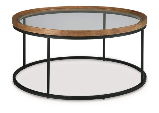 Simplicity meets sophistication in the Noraluna coffee table. Its clean lines, round form and tempered glass top create a light, uncluttered look that complements interiors ranging from casual to contemporary. The rich mango wood and matte black metal frame incorporate subtle contrast for a refined feel.