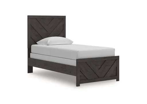 Designed with everyday style in mind, the Prendonea twin panel bed is a simply chic approach to modern living. A dark charcoal finish blends black and brown undertones, creating a versatile look that effortlessly pairs with your existing pieces. And for an extra dash of trend-right style, the headboard is dressed in a playful chevron pattern.