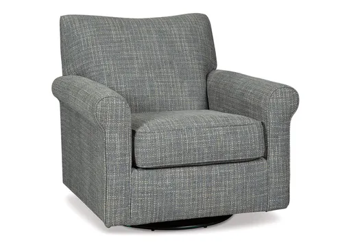 Sporting a tantalizing tweed weave fabric in such a soothing blue hue, the Renley swivel glider accent chair gives the classic roll arm chair a modern twist. Smooth, 360-degree swivel caters to your comfort—and your viewing pleasure. Gentle glider feature is designed to rock your cares away.