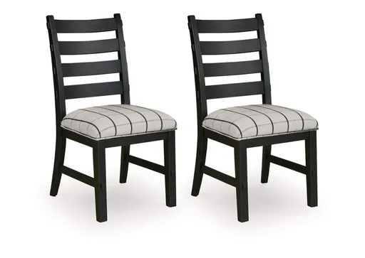 Rustic character with a dash of refinement. Outfitted with trendy plaid upholstery and completed with a matte black finish, the Ridgester dining chair combines a classically chic ladderback design with the must-have function of performance fabric. Loaded with charm, it completes your dining space with modern farmhouse flair.