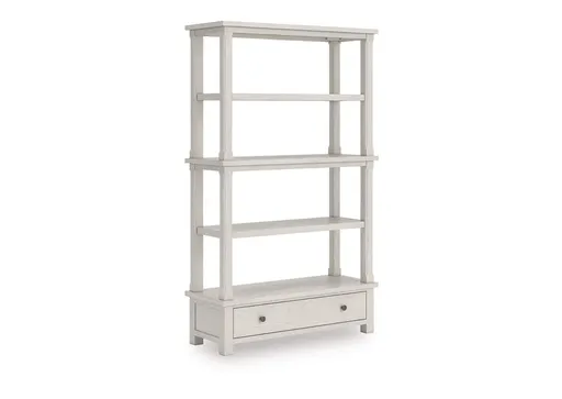 The Robbinsdale bookcase is sure to impress when it’s time to study or work from home. With its antiqued white finish and wood grain texture, modern farmhouse-style workstations have never been so fashionable. The open four-shelf design is ideal for storage and displaying your treasures. And that large storage drawer brings even more function to your workspace. All that’s missing is you.
