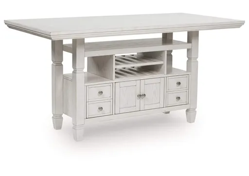 The Robbinsdale counter height dining table brings an air of casual charm to mealtime. With its antiqued white finish, farmhouse-style dining has never been so fashionable. And this curated approach to everyday function is loaded with storage options, from cabinets to drawers to wine shelves. All that’s missing is you and your family.