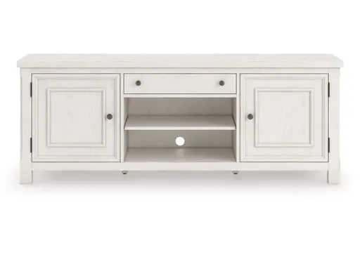 The Robbinsdale TV stand is sure to impress when it’s time to relax after a tough day. With an antiqued white finish and wood grain texture, modern farmhouse-style design has never been so fashionable. Its cabinets and adjustable shelves are ideal for keeping all your equipment well organized and displaying your treasures. And that storage drawer is perfect for smaller accessories, bringing even more function to your entertainment space. All that’s missing is you.