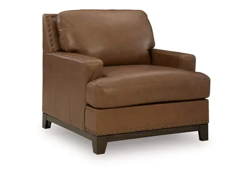 Effortlessly blending contemporary and classic elements for a truly timeless look, this chair offers a fresh take on transitional style. A robust silhouette is coupled with skillfully matched leather and faux leather upholstery, while nailhead trim adds a touch of subtle sophistication. Pleasingly plump cushions with jumbo stitching provide exceptional comfort. We’re all in—how about you?