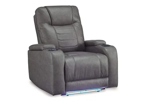 Elevate your movie nights with the Schooner Rocks power recliner. Its adjustable headrest ensures a perfect view of the TV no matter how far back you recline, and the extended ottoman offers extra space for maximum comfort. Stylish stitching and ambient LED lighting create a theater-style experience. Sit back, relax, and enjoy the show in complete comfort.