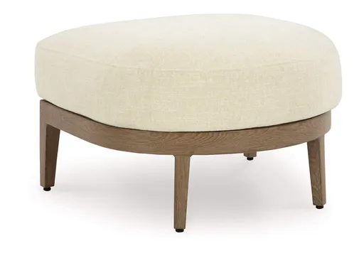 Elevate the appeal of easy-breezy living with the Serene Bay outdoor ottoman. Made to look like wood yet durable enough to weather the elements, it's sure to serve you and your besties well, year after year. The gentle curve of the frame is echoed in the cushion, which is covered in Nuvella+™ high-performance fabric. Talk about plush refinement.