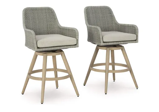 The Seton Creek swivel bar stool invites your casual contemporary style outdoors. With its resin wicker in a chic neutral hue, it expertly marries refined design with durability. The 360-degree swivel makes it easy to switch from watching the kids at the pool to grabbing a drink from the table. And breezy summer mornings and cold winter nights are made all the more comfortable with high-performance Nuvella+™ fabric covering the seat cushion.