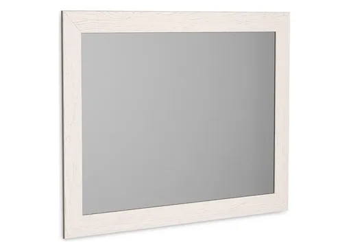 With its clean-lined look and modern attitude, the Stelsie mirror is a fresh style awakening. A crisp, white hue over subtle replicated wood grain easily complements other furniture finishes. Whether hung vertically or horizontally, this alluring mirror is on the cutting edge of cool.