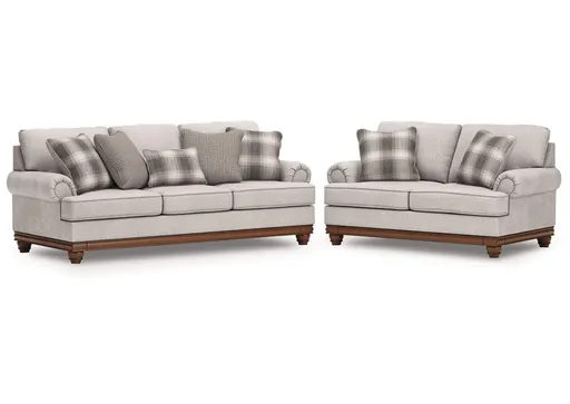 Fresh yet classic. That’s the beauty of the Stoughton seating package. Dressy yet soft to the touch, its organic neutral-toned upholstery is sure to bring a transitional farmhouse aesthetic to your living space. A full wraparound base and decorative turned legs complete the set's cozy and inviting look.
