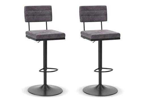 Have a seat in sleek style with the Strumford upholstered swivel bar stool. Contemporary with a casual vibe, it's dressed to impress with a metal frame and a cushioned seat and back wrapped in gray faux leather. Along with the bar stool's smooth-gliding swivel, a pedestal allows you to adjust its height to accommodate your space.