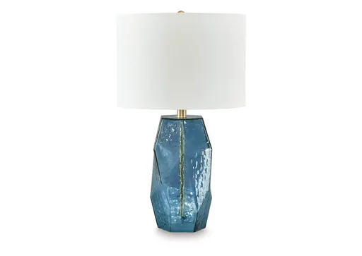 Clearly a contemporary choice, the striking Tallow table lamp wows with understated elegance. Its faceted blue glass base adds rich texture and a warm glow to a bedroom or living area, making it the perfect accent to brighten your home and make every moment shine.