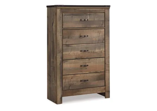 Whether she loves horses or he's a cowboy at heart, the Trinell chest of drawers matches their authenticity. Its rustic finish, plank-style details and nailhead trim pay homage to reclaimed barn wood, making for a chic look loaded with charm. Five roomy drawers keep clothing or toys nicely reined in.