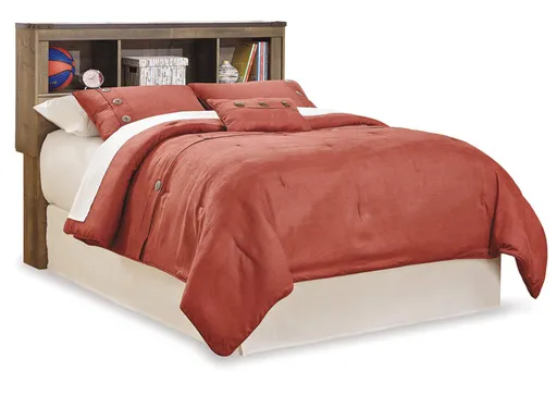 Whether she loves horses or he's a cowboy at heart, the Trinell full bookcase headboard matches their authenticity. Its rustic finish, plank-style details and nailhead trim pay homage to reclaimed barn wood, making for a chic look loaded with charm. Mattress available, sold separately.