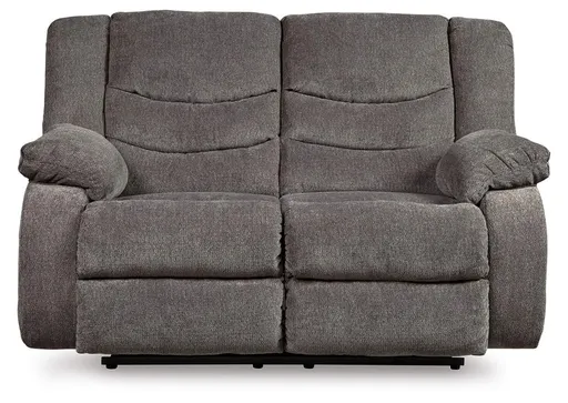 The Tulen reclining loveseat puts the win in winning. Its waterfall back design and doubly plump pillow top arms team up with soft chenille fabric to go for the goal. Ample seating room makes the comfort possibilities endless. Sit back and relax. You won’t go wrong with this reclining loveseat.