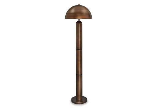 Dome sweet dome. Shine a light on your love of all things contemporary with the Wendfield floor lamp. Its sleek antiqued copper-tone finish and bold, columnar design add a brilliantly modern touch to any room. A dome-shaped shade provides a warm and focused light, perfect for reading or creating a cozy ambiance. The matching table lamp (sold separately) is also a bright idea.