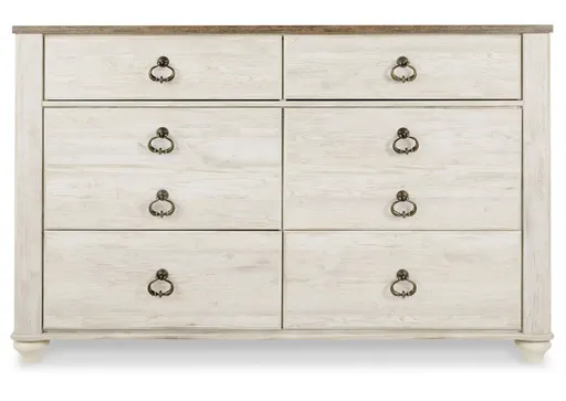 The Willowton dresser is the ultimate statement piece for your coastal cottage or shabby chic inspired retreat. A whitewash finish on the drawers and sides is wonderfully easy on the eyes. Paired with the unique plank-effect top, it’s a driftwoody look that has our minds drifting away to beachy-keen escapes.