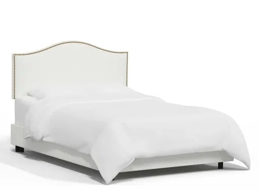 The fully upholstered Alexander bed has a unique headboard shape, allowing you to chart a course for a bedroom retreat that is at once comfortable-and distinguished. The headboard is wrapped in a sumptuous linen fabric, highlighting the beautiful curves and angles, while the nailheads make it a classic that never goes out of style. The bed comes complete with fully upholstered rails and a standard metal bed frame which is easy to assemble. If you are in search of an exceptional design to serve as the primary focus in your bedroom, this bed definitely deserves consideration.