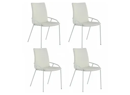 This Alicia side chair set of 4 features white textured faux leather-upholstered seat and back, set on a matte white metal frame.