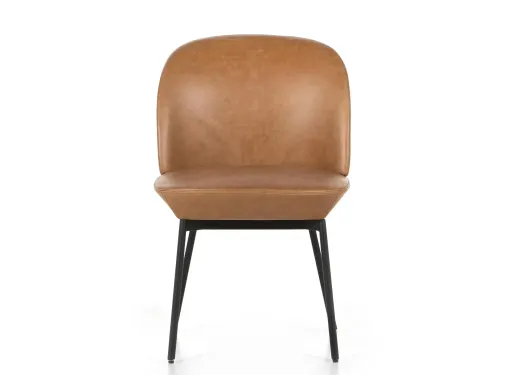 The Allston Dining Chair has slim, subtly splayed legs of black-finished iron support chamfered top-grain leather seating in a versatile tan.
