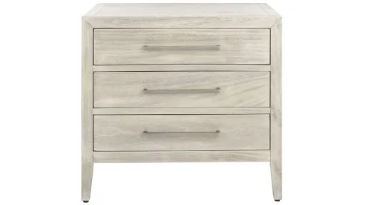 This Allyson Nightstand perfectly embodies the elegance inherent in simplicity. Allyson's light grey mahogany frame is given a couturier touch with the antiqued silver bar pull on its three spacious drawers, and designers love using them in both the boudoir or in the well-appointed living room.