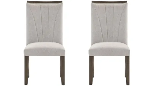 In a break from the minimalistic styling of contemporary design, the Alton Dining Chair provides a substantial platform for your dining pleasure. The acacia veneer of the collection is treated to a brown finish, its hue a neutral addition to your space. The side chair features a chenille beige fabric seat with a wood top-rail and fan-stitched seatbacks.