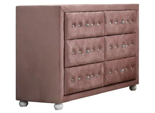 Make your room functional and visually enticing with this masterful Amethystinum 6 Drawer Double Dresser. Designed for you to stand in front of and get ready, this horizontal double dresser has a convenient and wide top area for your getting ready needs and supplies. Loaded with capacity, this piece is equipped with six easy open drawers for practical and good looking clothing storage. This dresser is built to last from high quality solid wood,. 30" H x 40" W x 18" D