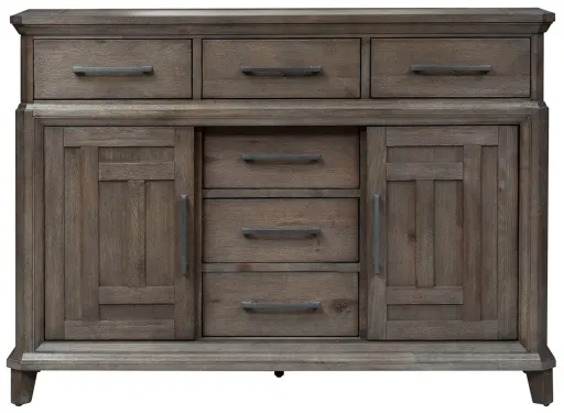 Urban living is defined with the Artisan Prairie bedroom dresser as you surround yourself in a modern environment, refurbished building or studio/loft. A natural feeling created by the living space as well as the furnishings that attribute to it. The essence of the urban living furniture is its unique ability to fit many different styles-rustic, casual, contemporary-with distressed finishes. This piece makes a statement in the simplicity of its design. Rooted in the arts and crafts movement it is updated with an aged oak finish and hardware in an antique pewter.