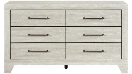 Organize your wardrobe with the spacious and stylish Atwood Dresser. Finished in a chic dusty gray oak, this dresser offers ample storage with its six smooth-gliding dovetail drawers, each equipped with durable metal-on-metal center glides for reliable use. The sleek antique silver-tone bar pulls provide a touch of modern elegance, perfectly complementing the dresser's clean and contemporary design. Crafted from a blend of PU paper, wood, and engineered wood, this dresser offers both durability and a sophisticated aesthetic to enhance your bedroom. Please note that assembly is required upon arrival.