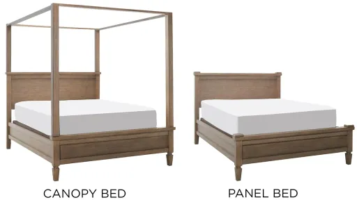 Crafted from hardwood with a dark oak finish, the Auberge bed blends stellar craftsmanship with a time-tested look. The subtle variation in tone on the antiqued finish adds a hint of texture to your room. This panel bed is a classic look you’ll love, and there’s more! The included four-post canopy offers the option to add a vintage decorative element to your sleep sanctuary.